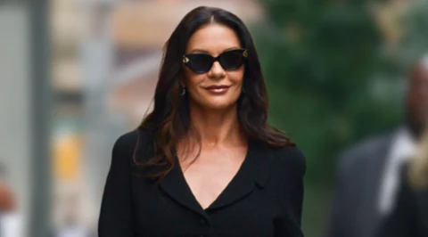 halo tu gwiazdy Catherine Zeta-Jones zadała szyku w Nowym Jorku. Jej kostium robi talię osy, bez względu na sylwetkę
