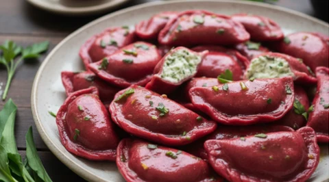 halo tu kuchnia Biało-czerwone pierożki – z burakiem, serkiem i ziołowym masłem. Przepis Karoliny Stolarskiej-Bigos