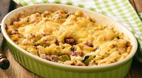 halo tu kuchnia Podwójnie serowe penne – z boczkiem i pomidorami. Zapiekanka makaronowa według Mateusza Gesslera