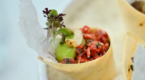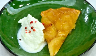 halo tu kuchnia Tarte Tatin. Francuski klasyk w intrygującej kompozycji – z "pleśniowymi" lodami i różowym pieprzem