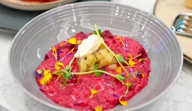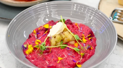 halo tu kuchnia Przepyszne i przepiękne, czyli buraczane risotto z pleśniowym serem według Mateusza Gesslera