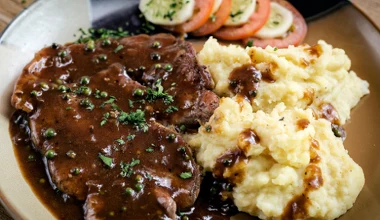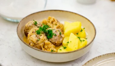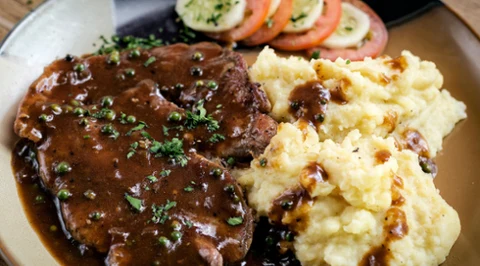 halo tu kuchnia Polędwiczki wieprzowe w sosie grzybowym – z ziemniaczanym purée i ogórkową surówką, czyli klasyka jesiennego obiadu