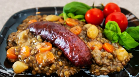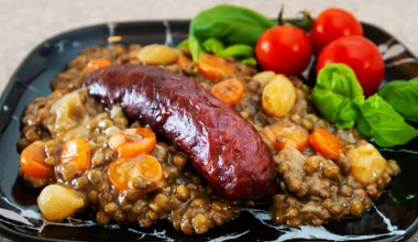 halo tu kuchnia Pieczona kiełbasa z zieloną soczewicą i warzywami Mateusza Gesslera, czyli jesienna uczta w najlepszym wydaniu