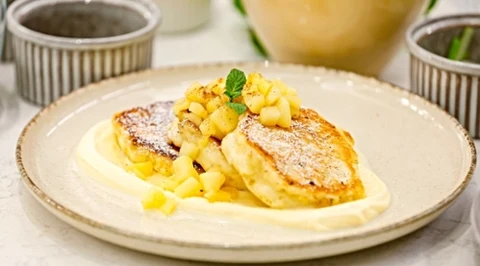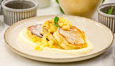 halo tu kuchnia Racuchy z kremem z serka mascarpone z białą czekoladą i kruszonką z orzechów włoskich