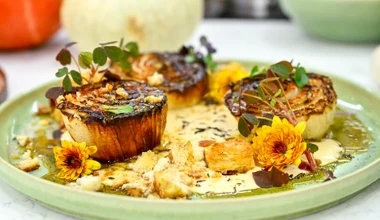 halo tu kuchnia Pieczona cebula z sosem serowym i grzankami korzennymi, czyli Jurka Sobieniaka jesienna przekąska idealna