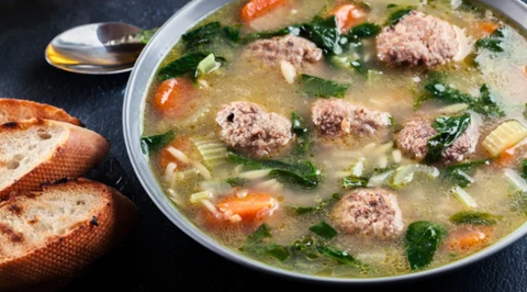 halo tu kuchnia Rozgrzewająca zupa warzywna z pulpecikami wołowo-wieprzowymi i makaronem orzo od Mateusza Gesslera
