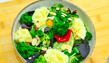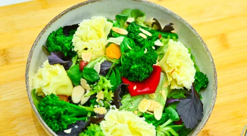 Ta odmiana brokuła to prawdziwy hit. Mateusz Gessler serwuje go w kolorowej sałatce z cytrusami, dojrzewającym serem i dressingiem