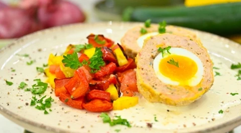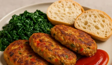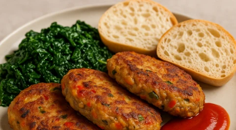 halo tu kuchnia Kotlety wieprzowo-ziemniaczane – ze szpinakiem i ciabattą podane. Propozycja Jurka Sobieniaka