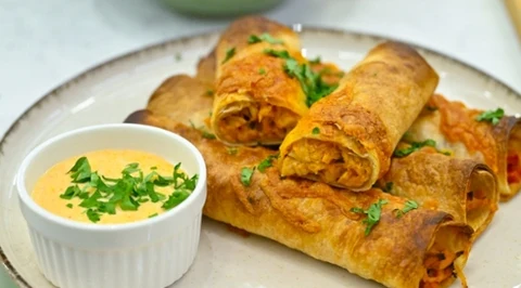 halo tu kuchnia Taquitos z kurczakiem i sosem serowo-jajecznym Karoliny Stolarskiej-Bigos. Idealne na chłodny, jesienny wieczór