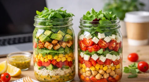 Hit TikToka, który naprawdę syci! Skuś się na warstwowe sałatki w słoiku - idealne do pracy lub na szybki posiłek