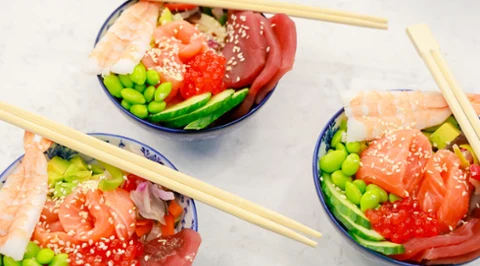 halo tu kuchnia Chirashi-zushi, czyli sushi w... bowlu. Z ikrą (dosłownie tudzież w przenośni), łososiem i tuńczykiem