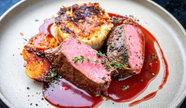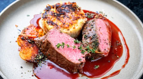 halo tu kuchnia Polędwiczka na selerowym purée – z aksamitnym sosem pieprzowo-truskawkowym. Przepis Ewy Olejniczak