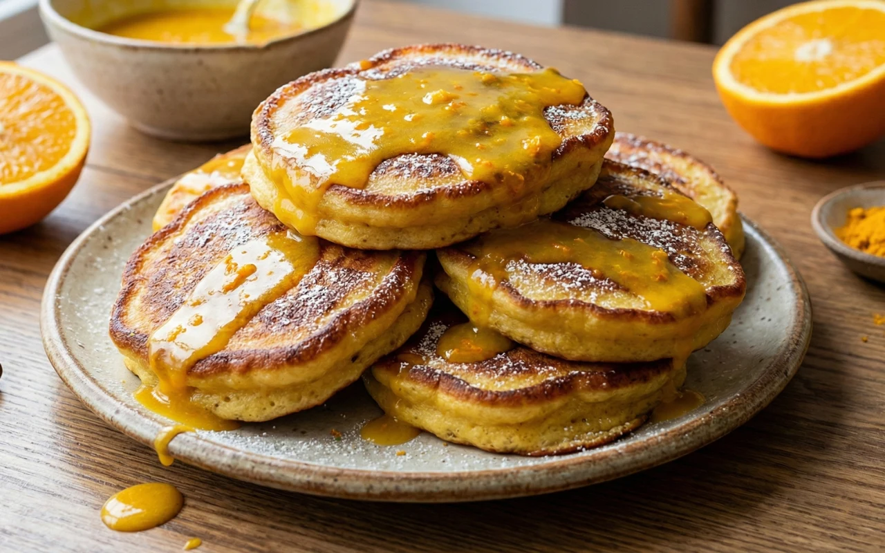 Resztę cukru pudru wymieszać z sokiem pomarańczowym i skórką otartą z pomarańczy, a także szczyptą kurkumy. Po lekkim przestudzeniu racuchów dekorować je lukrem.