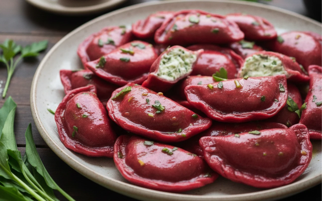 Biało-czerwone pierożki – z burakiem, serkiem i ziołowym masłem. Przepis Karoliny Stolarskiej-Bigos