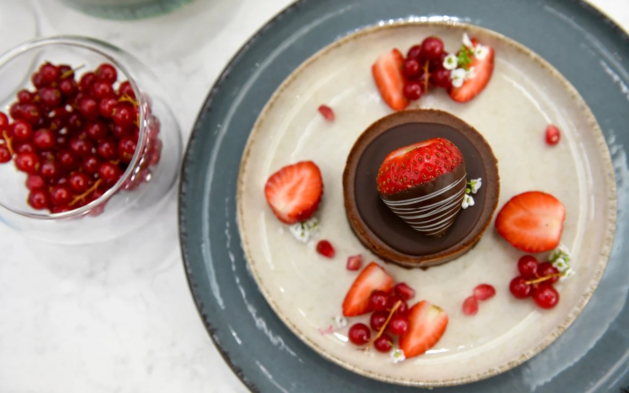 Jednoporcjowy mus czekoladowy z truskawkami z przepisu Karoliny Stolarskiej-Bigos