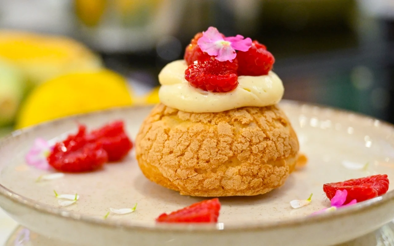 Deser jak z najlepszej paryskiej cukierni. Ptysie z kruszonką, waniliowym kremem patissiere i malinami