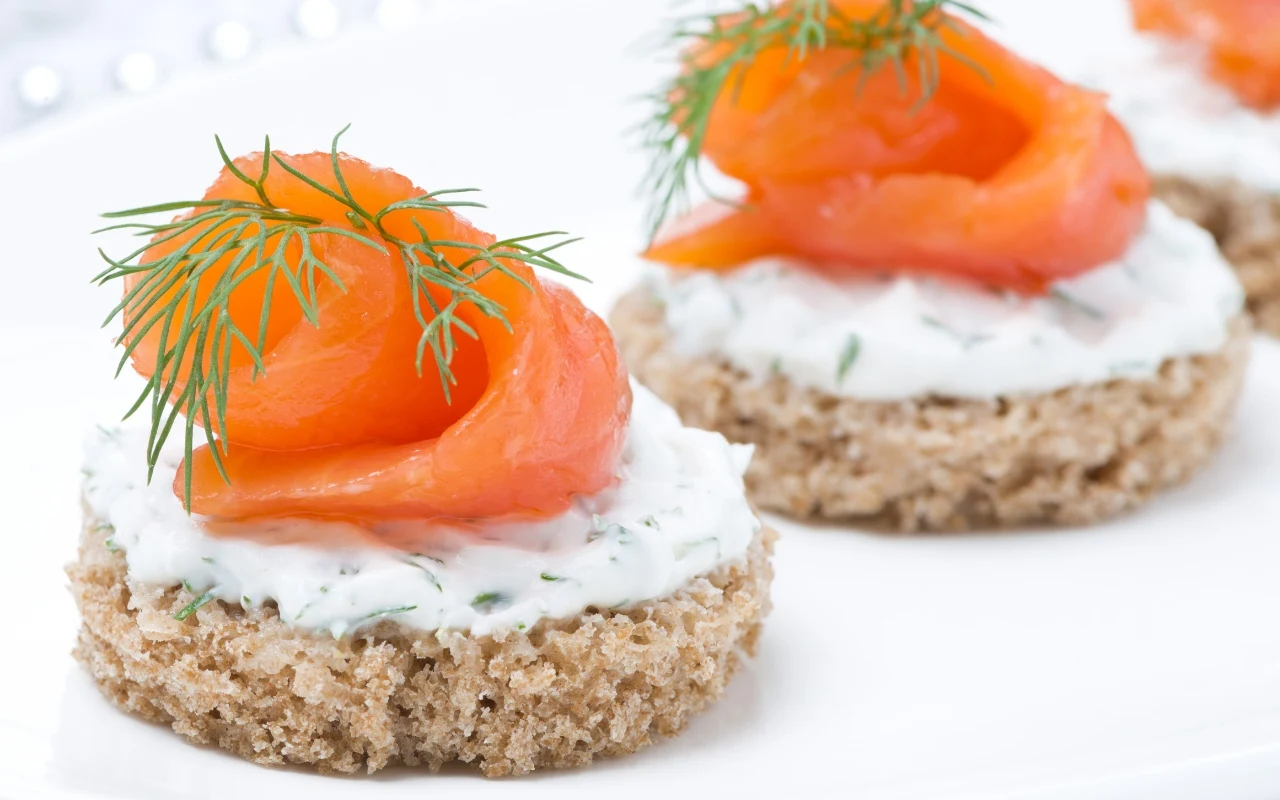 Śmietankowy gzik z łososiowym tatarem i rabarbarową salsą
