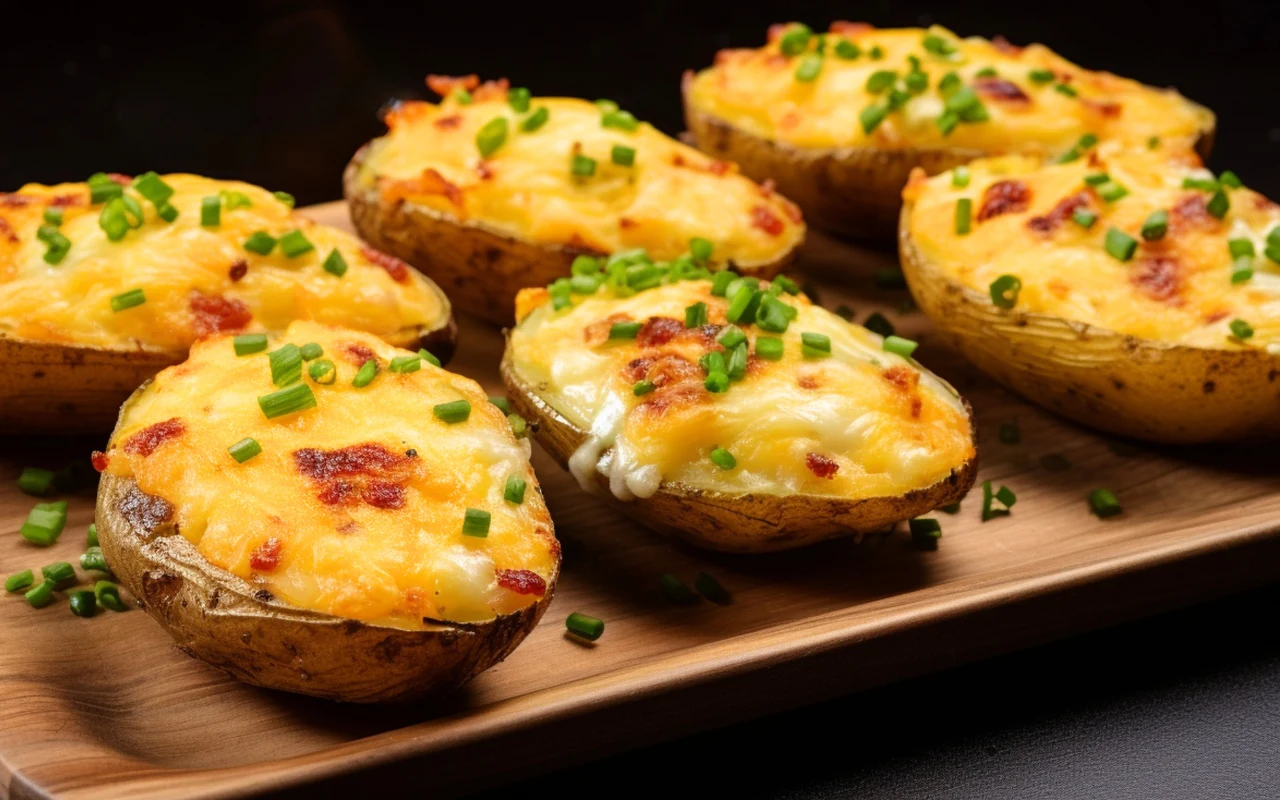Po wyjęciu z piekarnika posyp łódeczki świeżym, drobno pokrojonym szczypiorkiem. Najlepiej podawaj je od razu — są aromatyczne, kremowe w środku i cudownie chrupiące na brzegach.