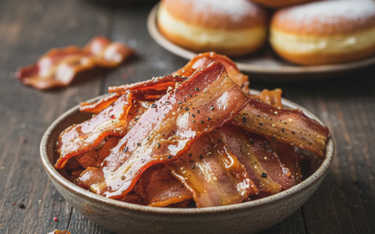 Współczesny tłusty czwartek kojarzy się jednoznacznie z cukierniczą celebracją, spychając na margines historyczną rzeczywistość dawnego karnawału. Przed laty okres ten świętowano bowiem przy suto zastawionych stołach, gdzie zamiast pączków królowały przede wszystkim tłuste mięsiwa. Jurek Sobieniak nawiązuje do tej zapomnianej, mięsnej genezy, nadając jej jednak przewrotny, deserowy charakter, pasujący do dzisiejszych podniebień. Jego karmelizowany boczek łączy dwa porządki: mięsny konkret z dawnych lat i wszechobecną dziś słodycz. Trzy składniki wystarczą, by stworzyć chrupiącą, pokrytą szklistą glazurą przekąskę, która może stanowić intrygujący, wytrawny kontrapunkt w trakcie pączkowego maratonu.