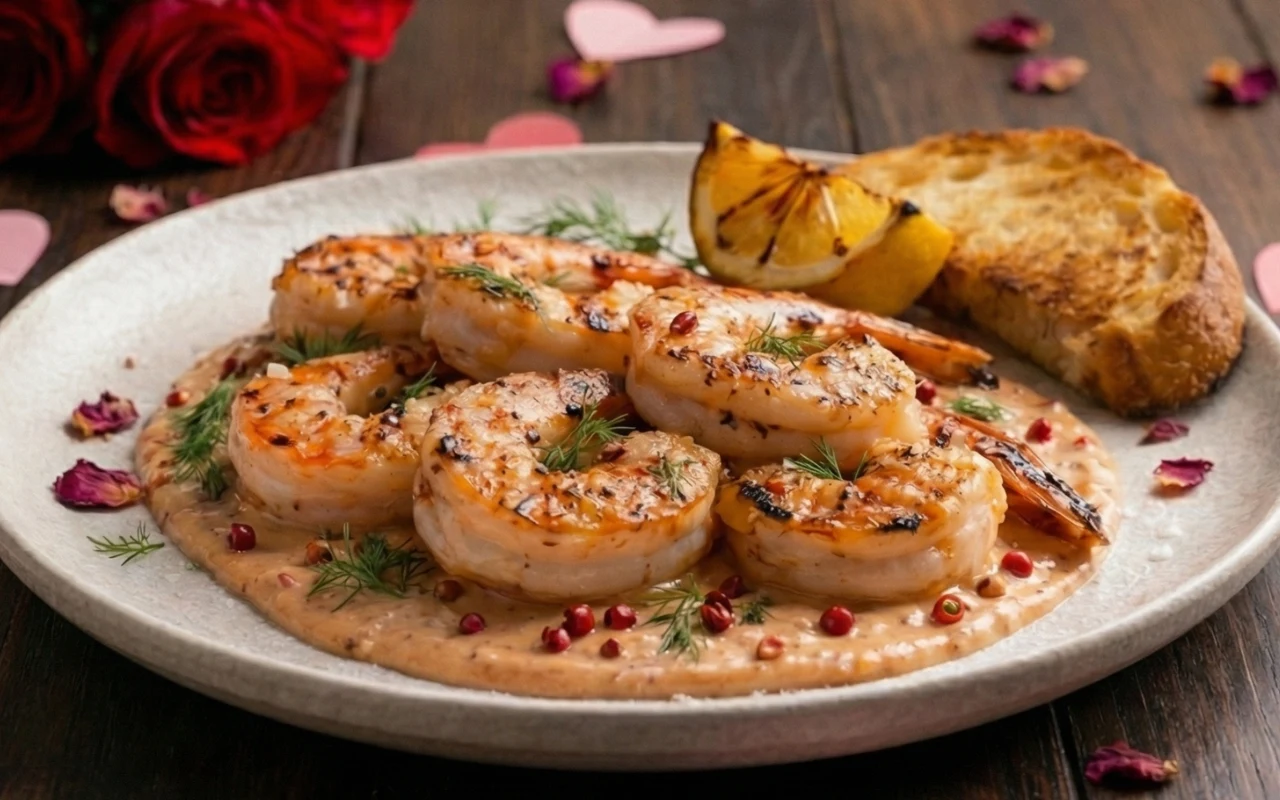 W kanonie kulinarnych afrodyzjaków skorupiaki zajmują miejsce szczególne, nie bez powodu kojarząc się z czternastym dniem lutego. Jurek Sobieniak w swojej walentynkowej propozycji rezygnuje jednak ze skomplikowanych form na rzecz surowej, niemal pierwotnej techniki. Grillowanie na rozgrzanej dsoli to zabieg, który błyskawicznie zamyka w mięsie soki i koncentruje morski smak, sprawiając, że krewetki stają się esencjonalne i niezwykle sprężyste. W zestawieniu z pikantnym, przełamanym słodyczą miodu sosem koktajlowym, tworzą kompozycję kompletną - danie lekkie, pobudzające zmysły i stanowiące idealny wstęp do dalszej części wieczoru.