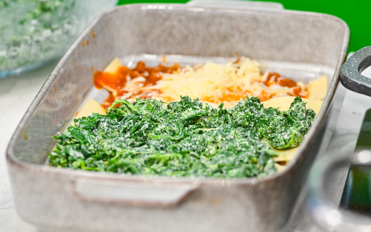 Lasagna z ragù alla bolognese, szpinakiem i ricottą