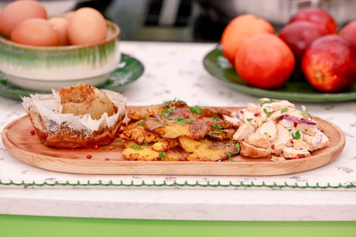 Onion boil z kraftowym mięsem drobiowym i gniecionymi ziemniaczkami z przepisu Karoliny Stolarskiej-Bigos