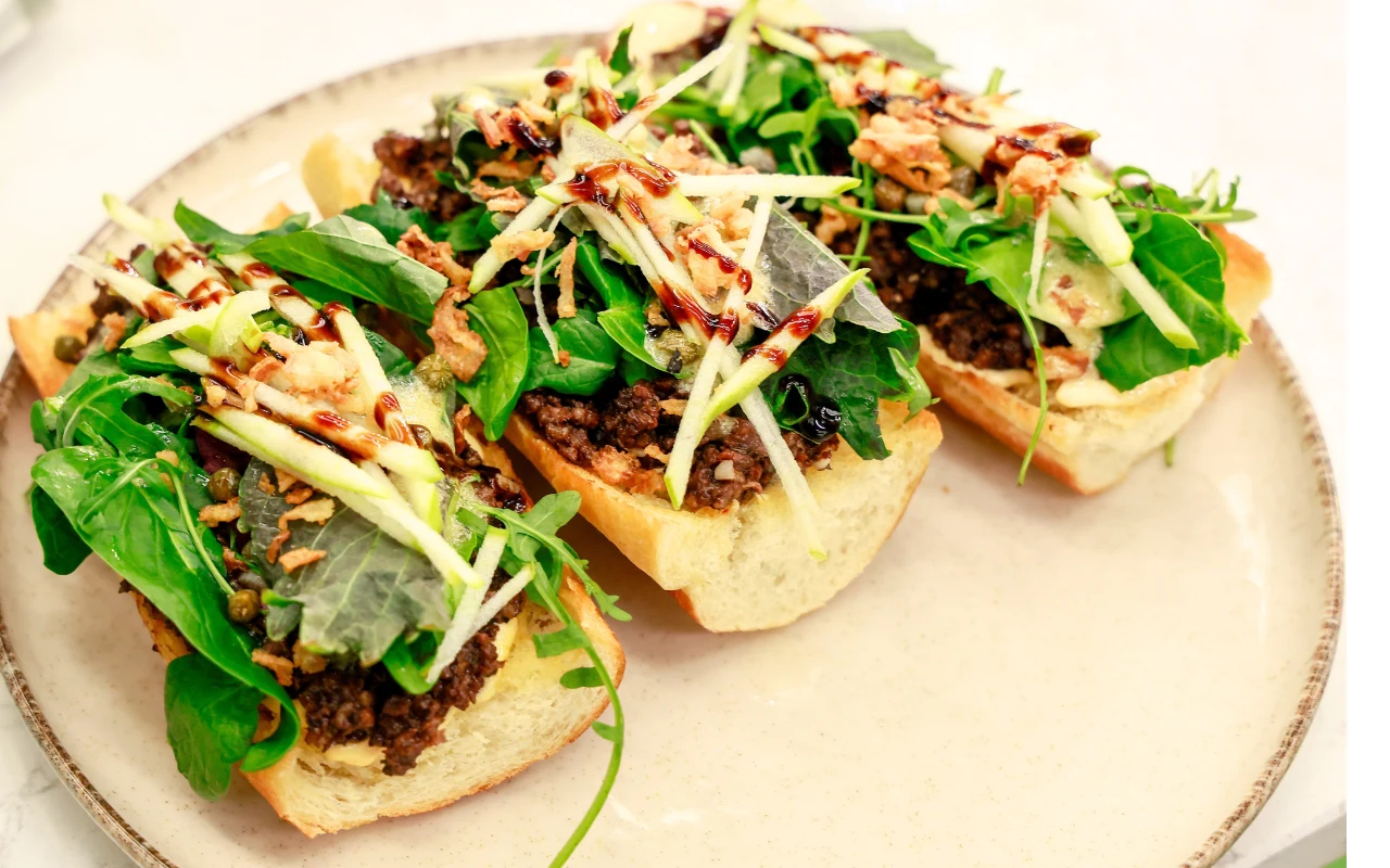 Dodatkowo mieszanka sałat mesclum, połączona z aromatycznym winegretem z oliwy, musztardy i ziół prowansalskich, nadaje kanapce lekkości i świeżego smaku. Kapary i jabłko wprowadzają nutę kwaskowości, która idealnie równoważy wyrazistą kaszankę i pikantny majonez, tworząc harmonijną, pełną smaku całość.