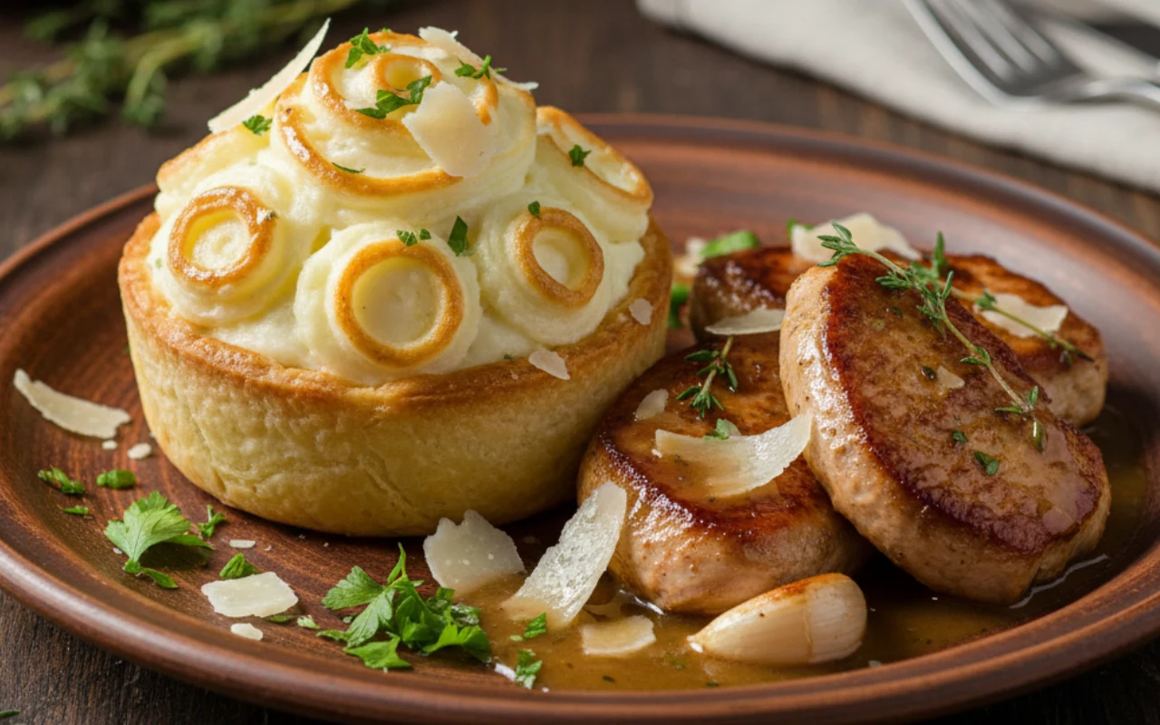 Niepozorne na pierwszy rzut oka, a jednak niezwykle dopracowane - tak można by opisać to danie Jurka Sobieniaka, w którym domowa prostota spotyka się z niemal restauracyjną finezją. Medaliony z indyka, duszone w bulionie kolagenowym, mają w sobie smak znany z niedzielnych obiadów, ale sposób ich podania - obok kruchej tarty z kremem ziemniaczanym - wprowadza je na zupełnie inny poziom. To przepis, który mógłby pojawić się zarówno na stole w rodzinnym domu, jak i w karcie eleganckiego bistro, gdzie liczy się nie tylko smak, lecz także pomysł.