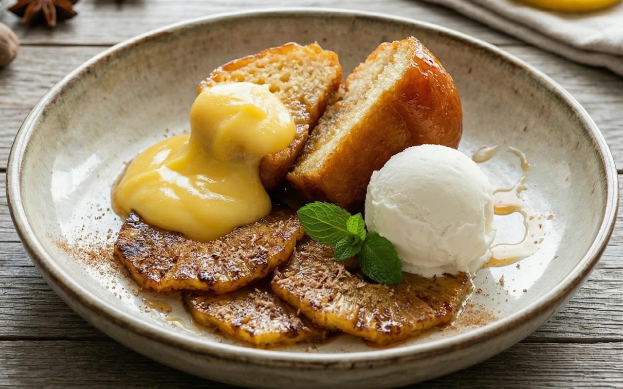 Pieczony ananas z babą rumową i cytrynowym curdem