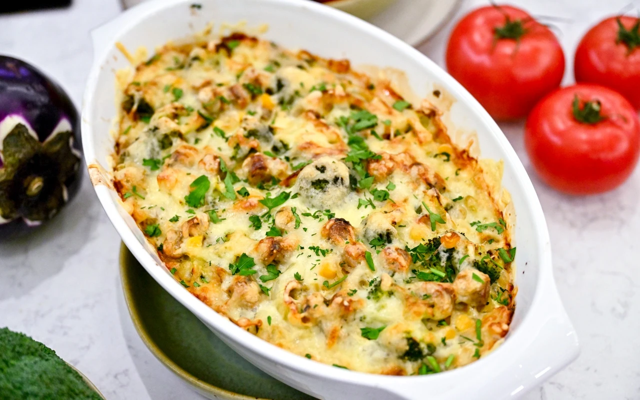 Smak kiełbasek i witaminy z warzyw. Zapiekanka Karoliny Stolarskiej-Bigos robi się sama