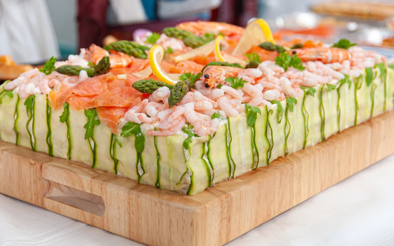 Smörgåstårta z łososiem i krewetkami