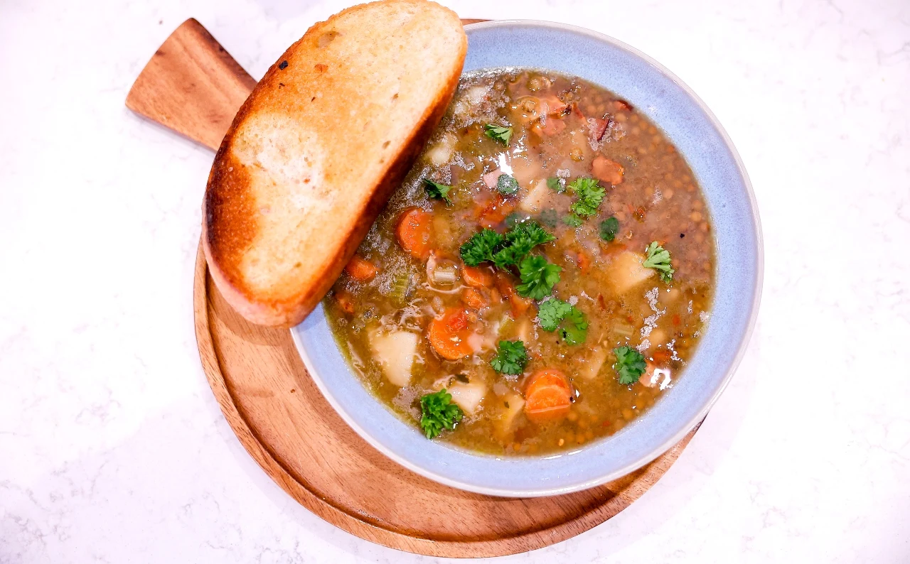 Rozgrzewająca zupa z soczewicy i boczku inspirowana kuchnią francuską