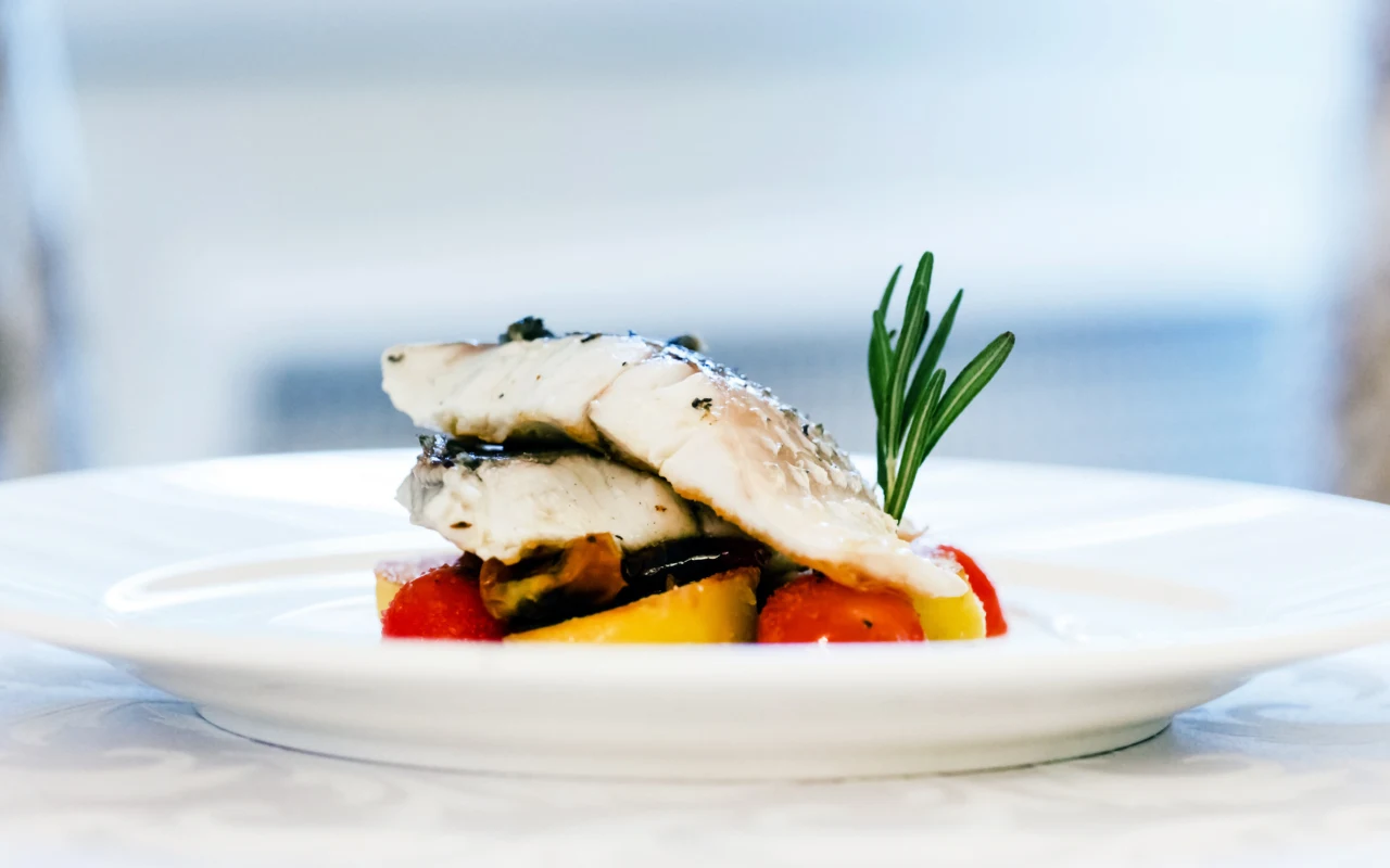 Ratatouille z sezonowych warzyw, filet z dorady na maśle oraz ryż jaśminowy