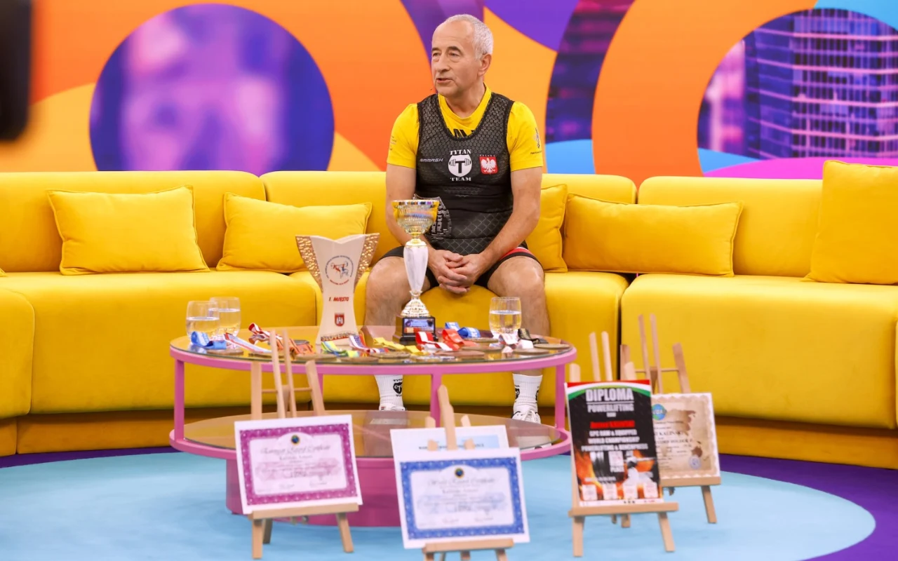 Dziś w "halo tu polsat" pojawił się niezwykle utalentowany sportowiec - Antoni Kaliński. Ma 71 lat, zdobył 26 złotych medali na mistrzostwach świata, 17 złotych medali na mistrzostwach Europy oraz ustanowił 81 rekordów w różnych dyscyplinach siłowych. Sportowiec mimo wielu osiągnięć nie zamierza osiadać na laurach. Niedawno zdobył tytuł mistrza świata w wyciskaniu na ławeczce. W czym tkwi sekret jego niespotykanej formy?