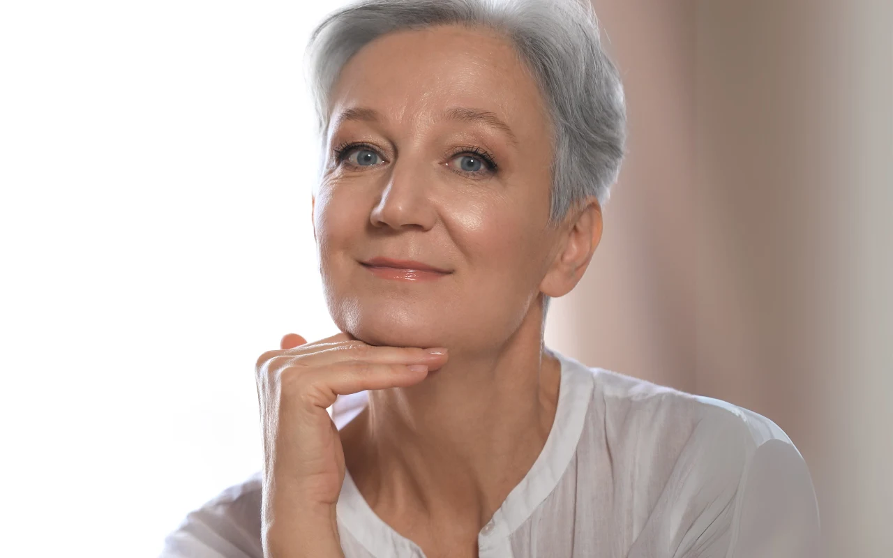Dzięki połączeniu efektu rozświetlenia i cieniowania metoda 53 świetnie działa na dojrzałe twarze - wysmukla owal i pomaga zamaskować drugi podbródek.