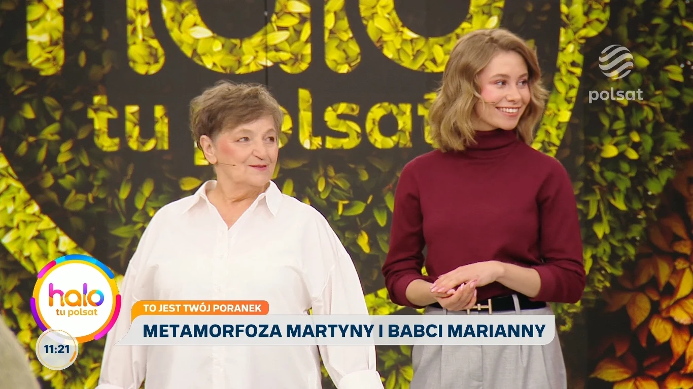W "halo tu polsat" byliśmy dziś świadkami pięknej metamorfozy. A właściwie dwóch - naszymi gościniami były bowiem Martyna Serafin i jej babcia, Marianna - bohaterki programu "Nasz nowy dom", dzięki któremu ich życie zaczęło zmieniać się na lepsze. A by tę przemianę spuentować, zaproponowaliśmy Martynie i Mariannie również lekkie zmiany w ich wyglądzie. Dzięki nowym fryzurom, makijażowi i stylizacjom nasze bohaterki zaprezentowały w studiu Polsatu odmienione oblicza.