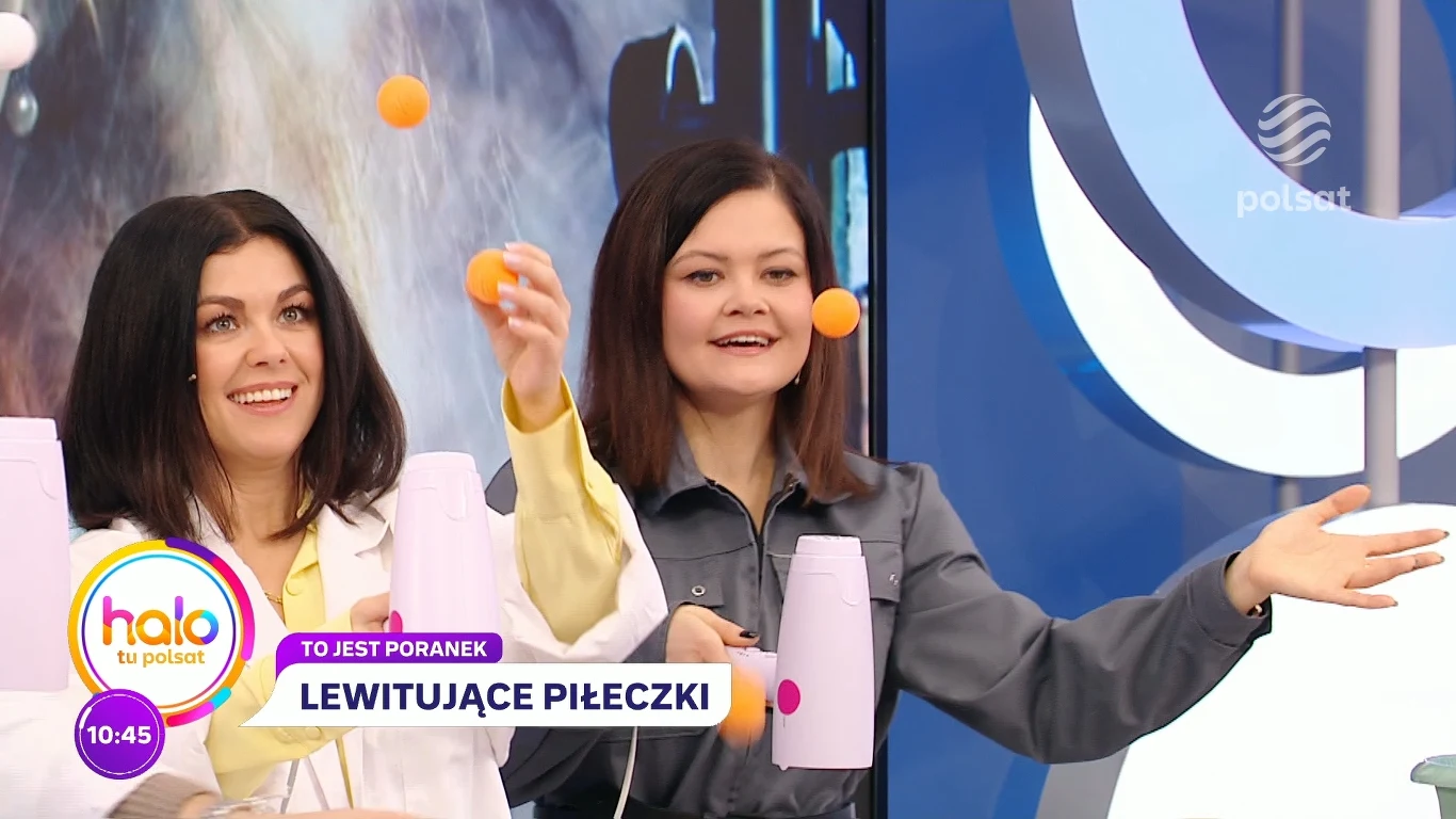 Piątek to dzień, kiedy w studio "halo tu polsat" mają miejsce ekscytujące i spektakularne eksperymenty. Dziś goszcząca w programie MartaTalma wspólnie z prowadzącymi zaprezentowali eksperyment z lewitującymi piłeczkami do ping ponga.