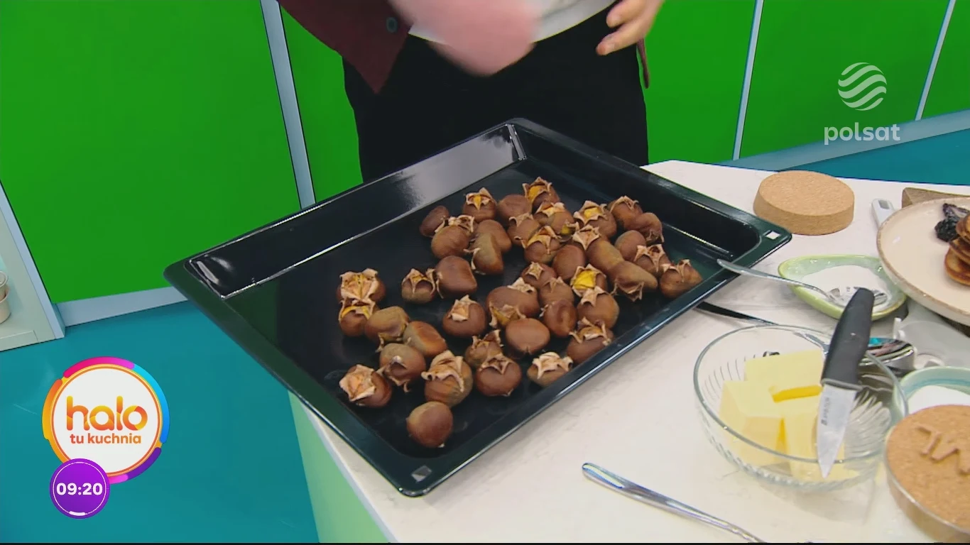 Kasztany są dostępne tylko przez krótki czas, ale mąką kasztanową możemy się cieszyć przez cały rok. Oprócz niespotykanego smaku ma inną zaletę - jest bezglutenowa. Kasztanowe placuszki sprawdzą się więc w diecie osób chorych na celiakię. Ewa pokazała też upieczone już kasztany, a prowadzący i goście spróbowali aksamitnej zupy.