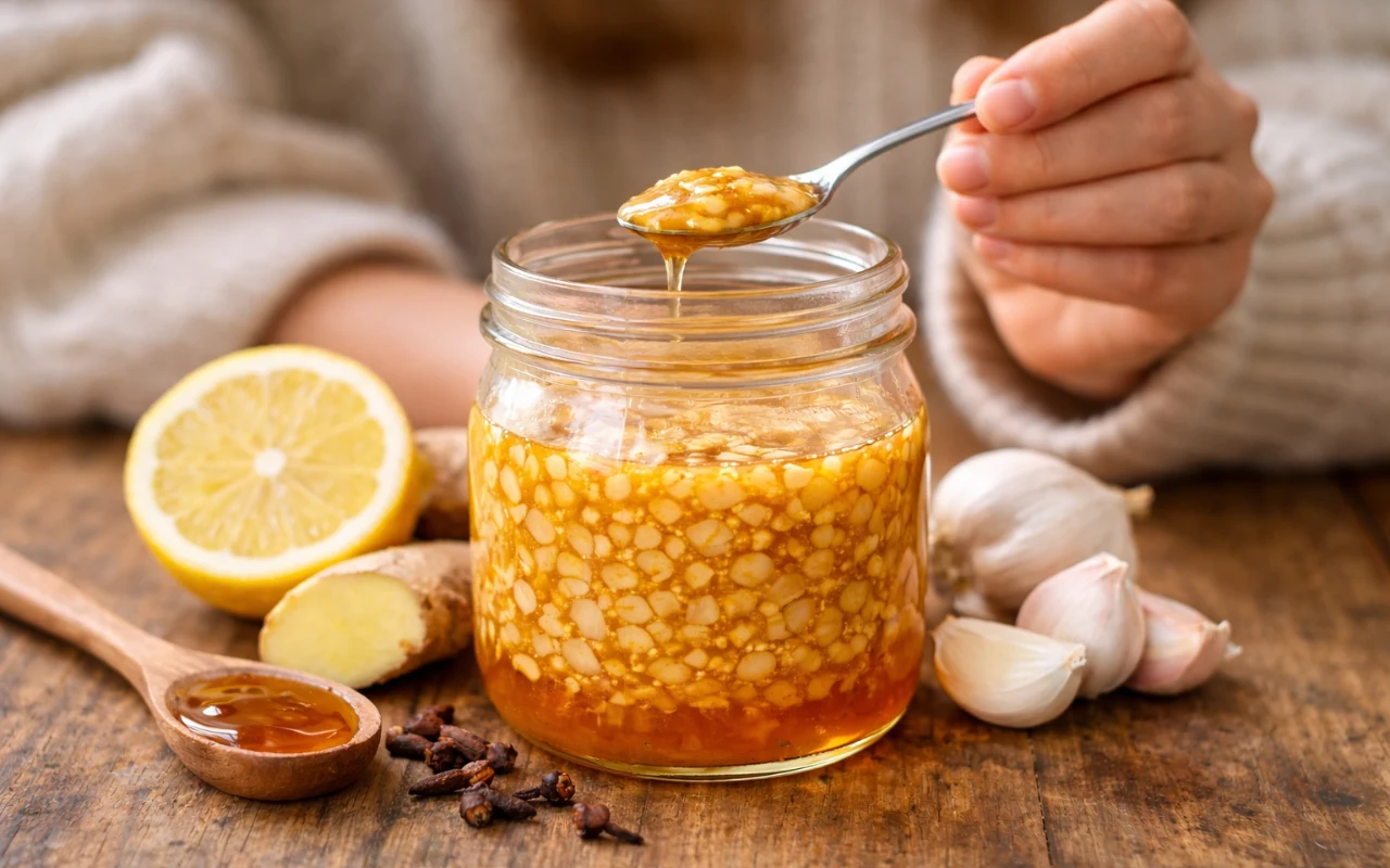 Odstaw słoik na kilka godzin lub na noc, bez mieszania i bez podgrzewania. W tym czasie cebula i czosnek puszczą sok, który połączy się z miodem w gęsty syrop. Na końcu dodaj "twist": kilka kropel soku z cytryny dla świeżości, cienki plaster imbiru, 2-3 goździki albo odrobinę ciepłej wody, jeśli syrop jest zbyt intensywny. Efekt to gęsty, aromatyczny płyn, który nie pachnie już wyłącznie cebulą, a smakuje jak coś pomiędzy syropem a domową nalewką zdrowotną. Nadal konkretny, ale zdecydowanie bardziej do zaakceptowania. Gotowe!